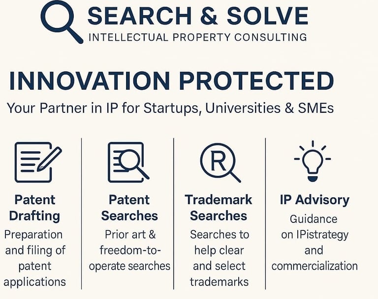At Search & Solve, we specialize in intellectual property consulting, helping businesses protect their innovations and navigate complex legal landscapes with confidence and expertise.